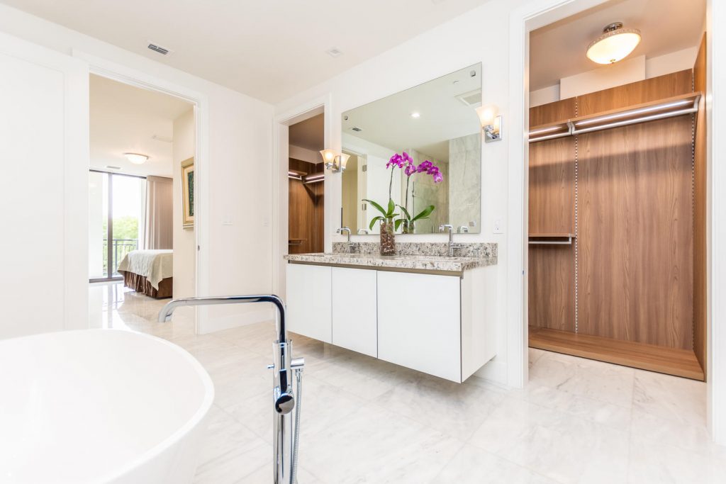 A modern masterpiece featuring distinctive, high-end finishes – expenses were not spared when completing this exceptional condo. Enjoy the urban lifestyle in this 2-bed, 2.5-bath + den with private elevator. The marble floors were installed in a Lozenge pattern creating a luxurious look, the Hunter Douglas window treatments are motorized, the Yamini closets are impeccable and spacious, and the white quartz kitchen counter tops are seamless + all Bosch appliances. The open-floor plan is enhanced by the 400 SF terrace creating the perfect setting for large gatherings with peaceful views of the surrounding nature. This unique property is in a prime location, only a few blocks away from restaurants, shopping, nightlife, theaters, cinemas, golf courses and everything downtown Coral Gables has to offer. The Biltmore Parc boutique condo is the ultimate retreat for the sophisticated buyer.