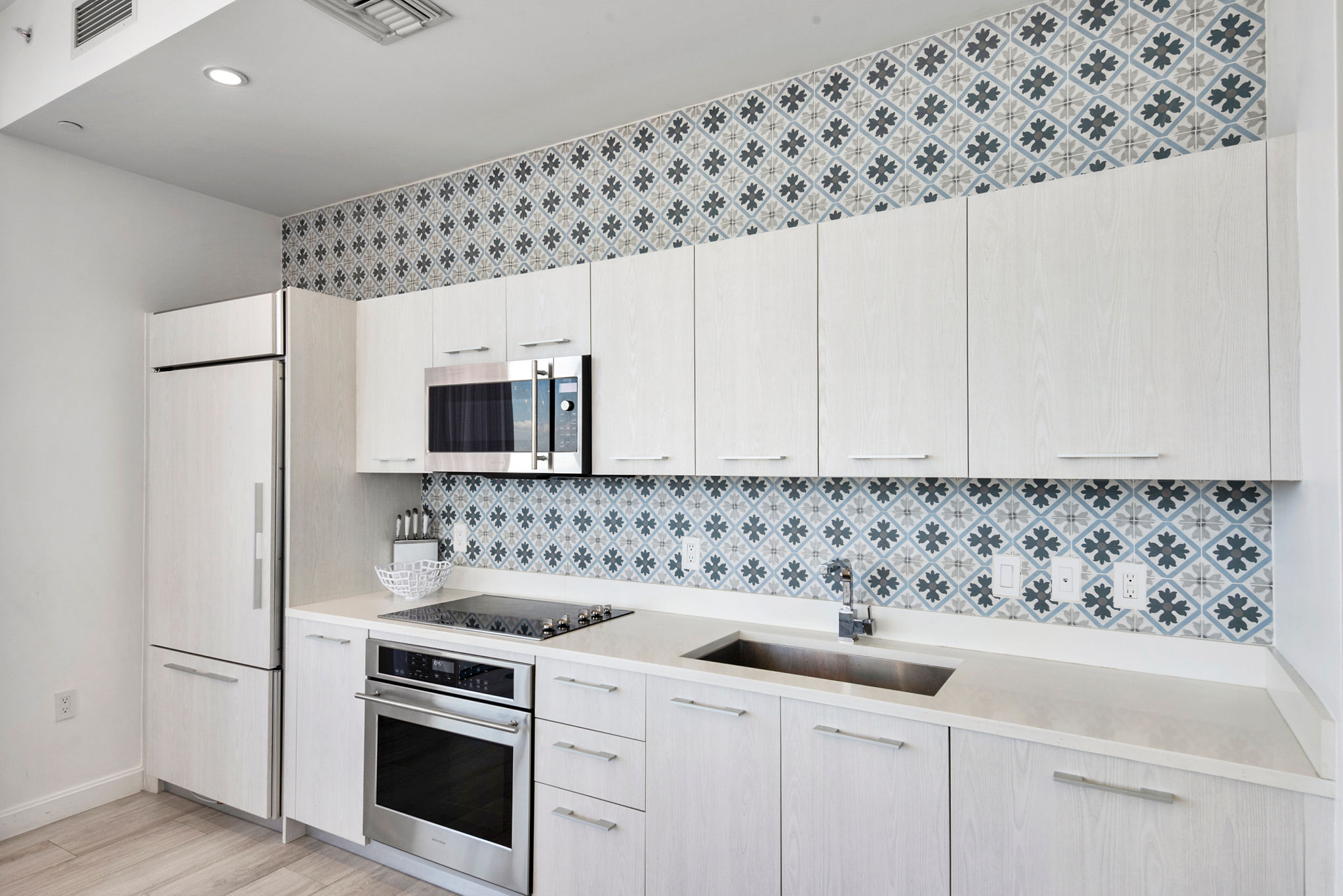 Fall in love with the tasteful, custom upgrades, including: Italian tiles in the kitchen, glass chandelier in the dining room, custom closet doors, shades and more! You will enjoy floor-to-ceiling glass windows, GE Monogram kitchen appliances, in-unit stackable washer/dryer, imported stone countertops, and contemporary European cabinetry.