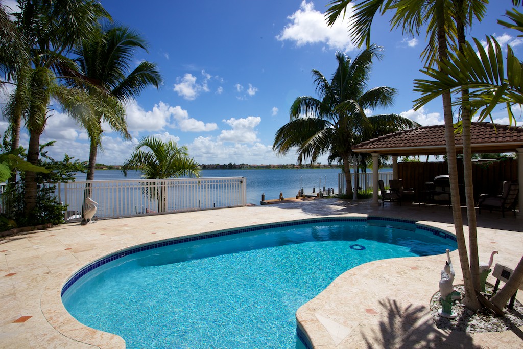 Got champagne taste and a chardonnay budget? This two-story lakefront home is located within the guard-gated community of Venezia Lakes. Pamper yourself with mesmerizing lake views and elegant appointments throughout. Spacious formal living, dining and family room with adjoining open granite kitchen & powder room. 3 bedrooms upstairs with en-suite bath. Master features 2 walk-in closets and balcony. 2 car garage. Sparkling pool, pavilion and floating dock complete this remarkable home. Bring your toothbrush and jet ski! See & share the video-