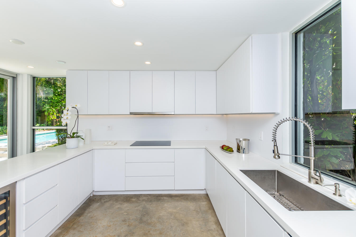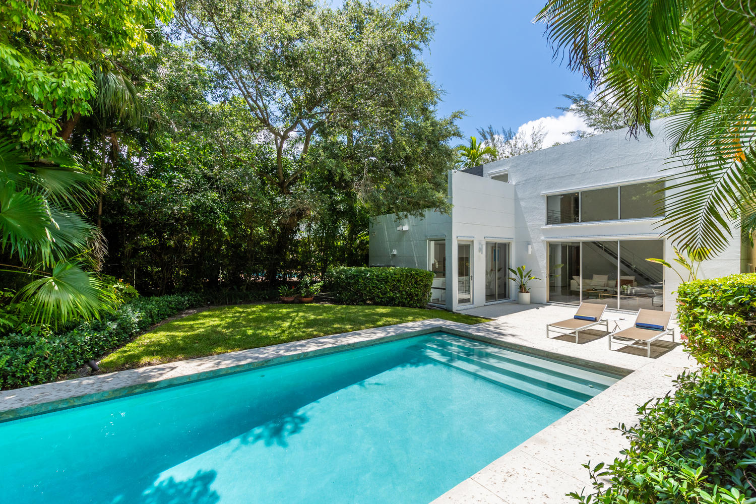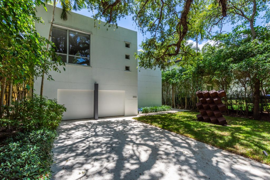 Coconut Grove home for sale – The Grove Experts present to you their newest listing: an architectural gem designed by world-famous architect Roney Mateu. His preference for the clean geometry of modernism is showcased triumphantly in this home. Under his supervision, the house was completely renovated in 2018, keeping the simple, minimalist lines that evoke a sense of avant-garde elegance. The high ceilings and expansive rooms allow light to travel gracefully throughout the home creating light-filled and open spaces. 3 bedrooms and 3 bathrooms are offered. The master bedroom’s walk-in closet is behind the headboard (see photos). The office/design studio towers over the living room. The home offers an impressive vista of the pristine pool and surrounding tropical vegetation through over-sized doors and windows, yet ensures privacy with its smart floor plan. It is located in sought-after South Coconut Grove, only a few blocks from Grove Village with its boutiques & restaurants, and only minutes away from marinas, yacht clubs, MIA, & the Beaches. Ransom Everglades, Carrollton, and St. Hughs are nearby.
